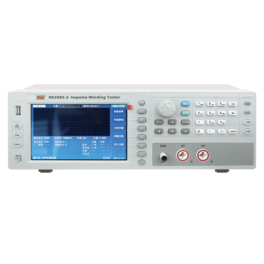 RK2885-2/RK2885-4/RK2885-X脈沖式線圈測試儀RK2885-2 高壓通道數:2 脈沖電壓:100V~5000V, 10V步進,5%±10V 脈沖能量:最大0.25焦耳 測量速度:單繞組測試最高12次/秒,四繞組測試最高2次/秒 RK2885-4 高壓通道數:4 脈沖電壓:100V~5000V,10V步進,5%±10V 脈沖能量:最大0.25焦耳 測量速度:單繞組測試最高12次/秒,四繞組測試最高2次/秒RK2885-2/RK2885-4/RK2885-X脈沖式線圈測試儀 -